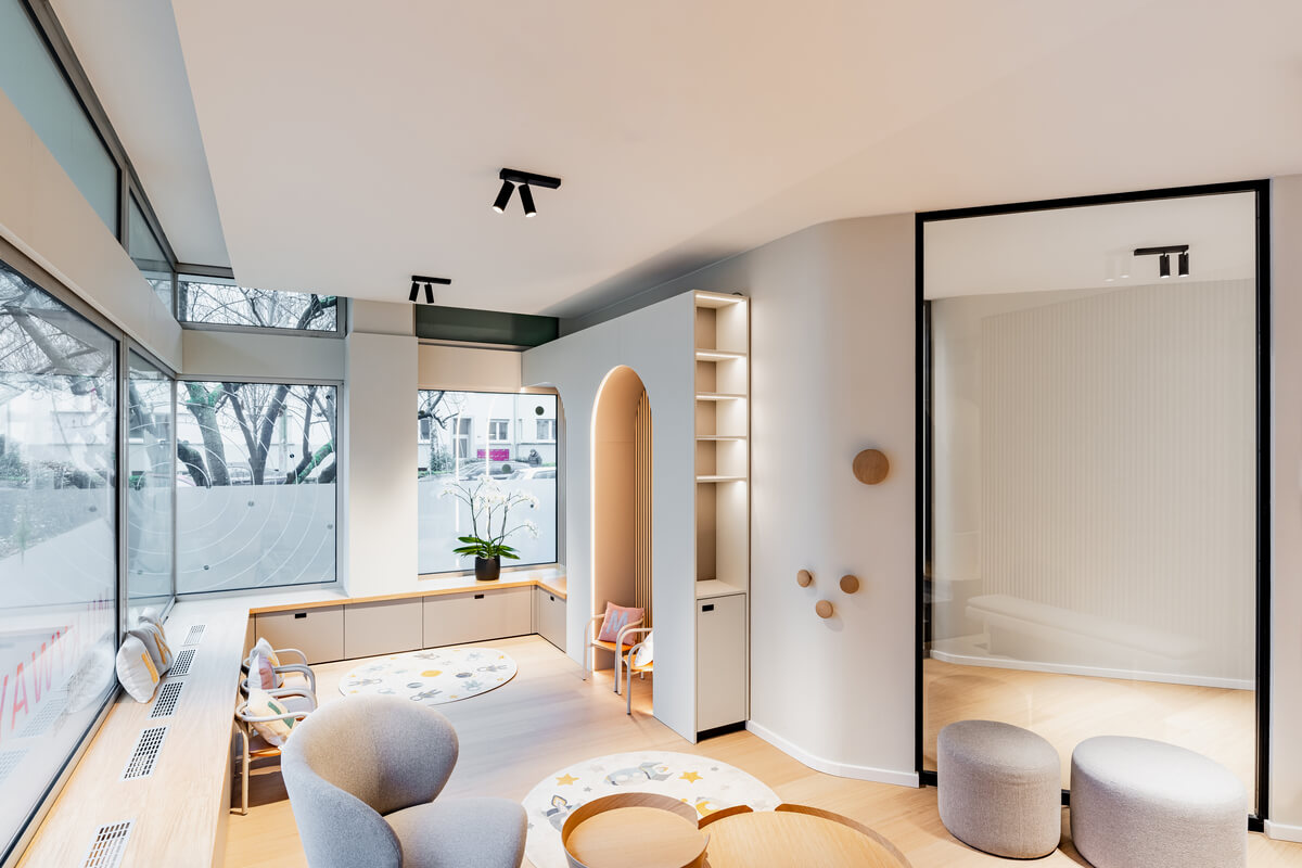 Die Gestaltung einer Zahnarztpraxis, die sowohl Kinder als auch Erwachsene anspricht, erfordert eine feinsinnig abgestimmte räumliche und ästhetische Sprache. Auf 430 m² wurde ein Interior-Konzept realisiert, das klare, zeitgemäße Strukturen mit einer einladenden Atmosphäre verbindet – so wird der Praxisbesuch zu einem positiven, spannenden Erlebnis für die gesamte Familie.